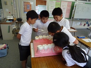 1・2年生に保健の先生から歯の勉強をしてもらいました。