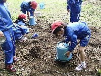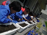 2017年5月12日 17時47分 1・2年生が生活で野菜の苗やたねを植えました。美味しく育ってくれるといいですね。
