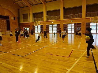 なかよし遊びは、5・6年生が考えてくれたドッジボールです。ボールを2つ使って、楽しくできました。