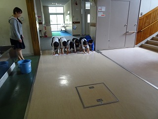 今日の全校水ぶきは、1・2・3階のろうかでした。