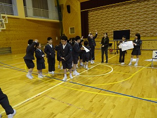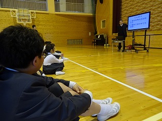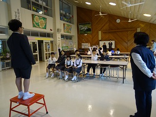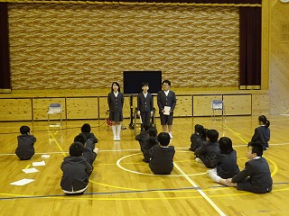全校集会で1年生を迎える会をしました。