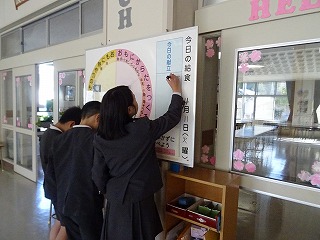 4月のあいさつ運動が行われています。校門から姿が見えるとすぐに大きな声であいさつしてくれると、とてもうれしくなりました。