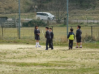 体育館でボール遊びができないので、昼休みは全校、運動場にいました。最近流行っているのが、ラケットベースボールです。塁と塁の間隔はなんと50mほどあります。とても楽しそうでした。