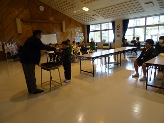 今年度のたてわり班が5・6年生から発表されました。なかよく活動していけるといいですね。