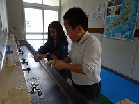 「ぼくのまねして」「ほらね、できたでしょ」と上手に教えていました。1年生は、とてもそうじが上手だったので、輪島で一番きれいな学校になれるかな…