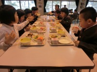 今日は3月16日,卒業式の前日。6年生にとって小学校最後の給食でした。給食はお祝い給食。ケーキの箱を眺め,わくわくしながら給食を食べていました。6年生も嬉しそうに小学校最後の給食を楽しんでいました。
