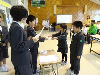 児童図書委員会から親子読書達成・年間目標達成の表彰がありました。