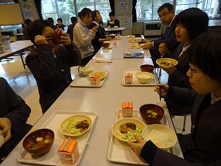 輪島市は給食で輪島塗の茶碗が時々出てきます。色合いがとてもきれいで、いつもよりおいしそうに見えます!美味しかった~