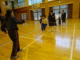 今日も縦割り班で8の字とびをしました。