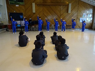 全校集会では1・2年生の発表がありました。1・2年生は、歌に演奏、ダンスを披露してくれました。2年生は九九も発表してくれました。先輩たちからは「ダンスがすごい上手だった!」「九九がスラスラですごいね!」などと感想をもらいました。