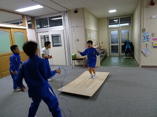 なわとび大会が近いので、休み時間になわとびの練習をすることが多くなっています。校長先生がなわとび練習ボードを作ってくれたので、2重跳びの練習をすることができます!