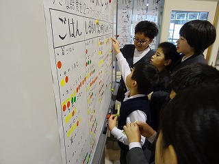 2017年1月30日 18時06分 全国給食週間だったので、児童保健委員会が給食のことを考えてもらおうと「すきな給食しらべ」を実施しています。「カレーライスがおいしいよね」「どっちにしようかな」と楽しそうに話し合っていました。