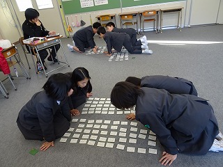 クラブ活動で百人一首をしました。聞き慣れない言葉などありましたが、がんばってとりました。