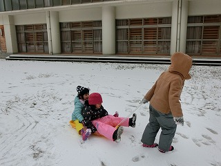 1・2年生が生活の時間に雪あそびをしました。楽しいね!もっともっとあそびたいね!