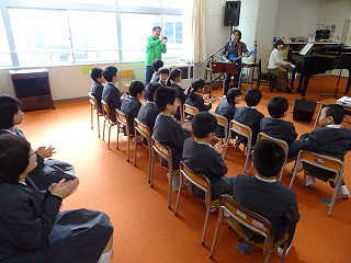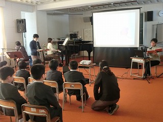 2017年1月24日 18時30分 スプールさんに来校して頂き、読み聞かせや演奏をききました。「読み聞かせが楽しかったです」「ピアノの音がとてもきれいでした!」「おっちゃんの歌が最高でした!」などなど児童は大満足でした。