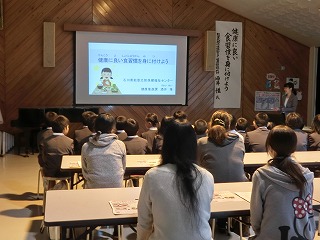 教育講演会では、能都北部保健福祉センターの管理栄養士の方が来てくださり、「健康に良い食習慣を身につけよう」という題で講演をしてくださりました。クイズなどで1年生から大人まで楽しむことができました。