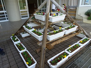 5・6年生がいただいた花をプランターに植えます。慣れた手つきですぐできました。