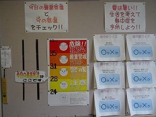保健室の前に、今日の最高気温と温度計が掲示されています。
