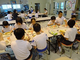 この日の給食の目標は決まって「なかよく食べよう」です。