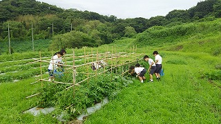 以前、体験農園で植えさせていただいた野菜の収穫を3・4年生がしてくれました。