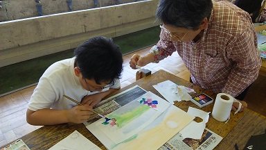 5・6年生が、あじさい祭りに展示する切り絵に取り組んでいます。市から2名の指導員の方がお見えになり、本格的に教えていただいています。今から、完成が楽しみです。