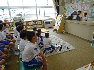 今日は図書委員会の読み聞かせがあり、全校が聞きました。