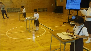 全校集会で、健康委員会が、正しいおはしの持ち方について、説明してくれました。早速、実践し、その成果を試す「小豆つかみ競争」を行いました。うまくつかめた人、苦戦した人と様々でしたが、おはしの国の人だから、毎日、少しずつ練習して行きましょう。