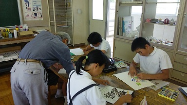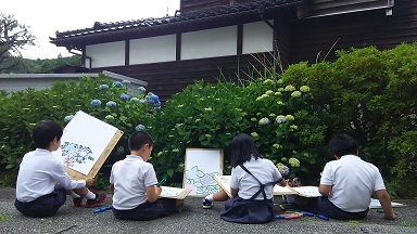 5・6年生が、濵高善祐さんにご指導いただき、あじさいの「切り絵」作りを行っています。優れた作品には、「あじさい賞」が授与されます。