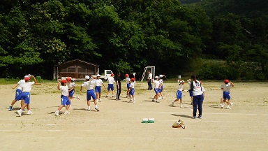 体力テストを前に、市のスポーツ指導員の方から、より遠くにボール投げるための指導をして頂きました。最初に折り紙を使って腕や体の使い方を練習した後、実際にボールを投げてみました。本番では、きっと練習の成果がでると思います。