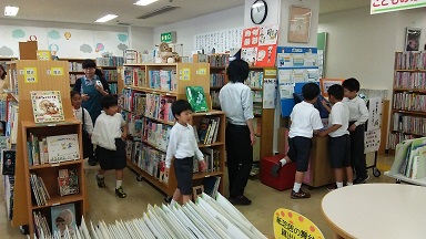 1・2年生が、輪島図書館の招きにより、図書館探検を実施しました。読み聞かせや紙芝居があった後、自分たちの興味のある本を探し借りることが出来ました。これから、気軽に図書館を利用できそうです。