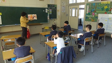 3人の読書ボランティアの方々に、今年度最初の、読み聞かせを行っていただきました。子どもたちは、耳を澄まして朗読に聞き入っていました。今後、月に1度のペースで来ていただく予定です。