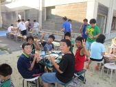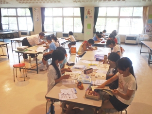 元気に夏休みの様子を話したり、宿題の答え合わせをしたり