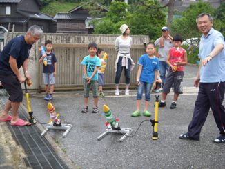 残念ながら、体育館の屋根に引っかかってしまうロケットや