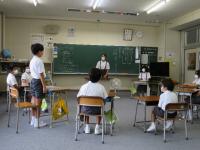 夏休み中の2回目の登校日です。残念ながら全員は揃いませんでしたが、休み時間には、先生も一緒に、みんなでドッジボールをしました。