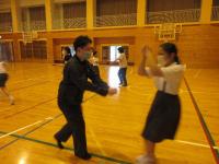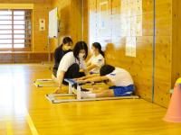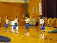 「三夜踊保存会」の方4名に踊りを教えていただきました。過去に経験のある高学年児童はすぐに思いだし、音楽に合わせて上手に踊っていました。初めての2・3年生も、保存会の方に優しく教えていただき、見様見真似で踊っていました。