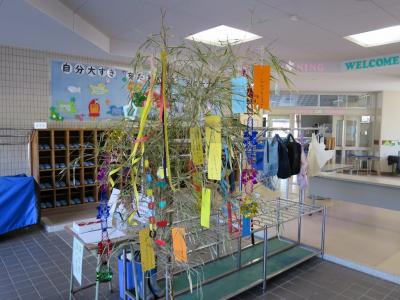 校務士さんが玄関に七夕のササを用意してくれました。