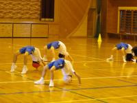 本校児童は柔軟性に課題があることから、体育の準備運動ではストレッチなどの柔軟性を高める運動を取り入れています。