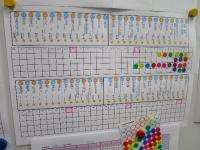 「大きな声で物怖じせず自分を表現できる子に」という思いで、音読チャレンジの取組を始めました。各自が練習した成果を試しに、校長室に来て音読します。合格すると自分の名前のところにシールを貼ります。