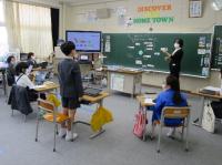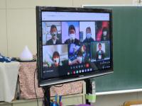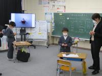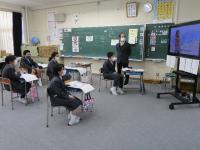 本校の3・4年生と、三井小の3・4年生が、リモートで国語の授業をしました。学年ごとのテーマでまとめたことを発表し、それに対する質問や感想を述べ合いました。3年生は「学校のじまん」、4年生は「生活調査の結果」について発表しました。