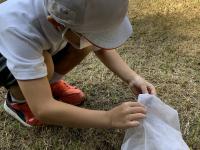 「ここにバッタがおるんやよ」「前、ここでカナヘビ見たよ」など、自分の体験を振り返りながら、いろんな生き物を捕まえていました。