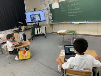 遠足前日、リモートで、三井小の子どもたちと自己紹介をしながら交流しました。遠足当日は、3・4年生が作ってくれた名札を胸につけ、更に交流を深めていました。次回の再会が楽しみですね。