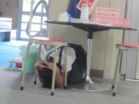 次の日の朝、子供たちに話を聞くと、「すぐテーブルの下に隠れたよ」とか、「近くに机がなかったから柱をつかんでしゃがんでいたよ」などの声が聞かれました。
