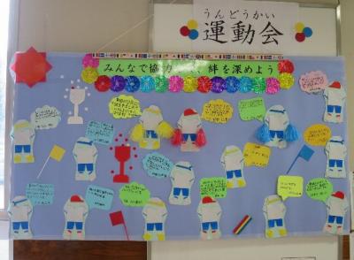 児童玄関には、15人それぞれの「運動会のめあて」を記したボードが設置されました。
