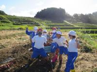 大きなおいもに歓声をあげたり、いくつものつながったおいもにびっくりしたりと、子ども達の元気な声が、青い空に響きわたっていました。