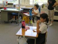 3・4年教室では、ぎょうざの皮を使ったミニピザづくりをしていました。プランターで育てた採り立てバジルも入れたピザをおいしそうに食べていました。