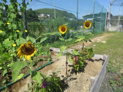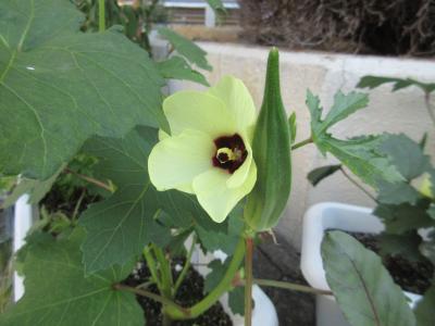 4年生のオクラが、日に日に大きくなっています。みなさん、収穫に来てください。
