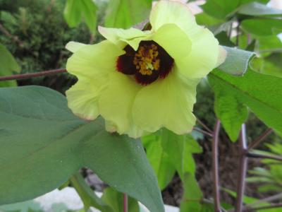 ワタの花とオクラの花は、似ています。同じアオイ科の仲間ですね。