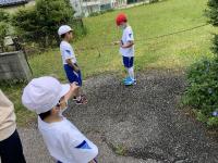 数日前から竹馬に挑戦している女児のもとに、既に乗り方をマスターしている高学年児童が加わりました。先の女児は、何度も何度も練習することで、一歩、二歩と歩みを進めています。「先生、今日は七歩いったよ」と嬉しそうに話してくれました。