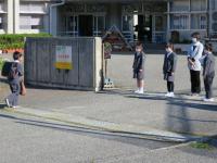 4月8日、6年生から始まった年度初めの「あいさつ運動」も、今日の3年生をもって終了となります。校門前に立った当番の「おはようございます」の元気なあいさつに、登校してくる児童も、しっかりとあいさつを返していました。学校前を通る地域の方からも、あいさつを返してもらい、子どもたちもとても嬉しそうでした。