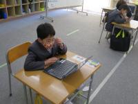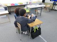 今日は、撮った写真をスライドに貼り付け、みんなで見合う時間です。